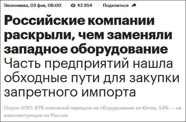 報道稱,蓋達爾經濟政策研究所調查實驗室今年1月對約1000家俄企下發問卷,調查其在設備、備用零件和配件中受到次級制裁的進口商品的更換情況。結果顯示,中國供應商在前兩項替換產品中所占份額都超過俄本土供應商,成為“最受歡迎的新渠道”,俄羅斯產品僅在配件產品這一項中有微弱優勢。