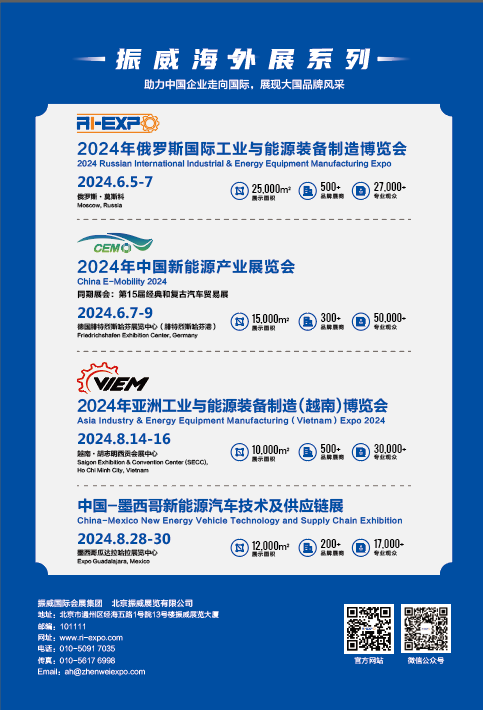 商務部部長王文濤近日表示,今年商務部將助力企業開拓新市場,積極支持企業參加境外展會以穩住外貿發展勢頭。在此背景下,振威會展作為全球會展綜合服務商積極布局境外展會,2024年還將在越南、德國、馬來西亞、墨西哥等多地籌備聚焦垂直領域、匯聚國際頂尖專家與前沿技術的海外展會。截至目前,2024年俄羅斯國際工業與能源裝備博覽會、2024年中國新能源產業展覽會(德國)、2024年亞洲工業與能源裝備制造(越南)博覽會、2024年亞洲工業與能源裝備制造(馬來西亞)博覽會已被國內多地政府列入境外展覽重點支持目錄,參展企業可享受當地對應的政府補貼政策。中國-墨西哥新能源汽車技術及供應鏈展也在緊鑼密鼓地籌備之中,該展會將于8月28-30日在墨西哥瓜達拉哈拉展覽中心舉辦,展示面積1.2萬平方米,將容納200家參展商以及1.7萬名專業觀眾面溝通交流。